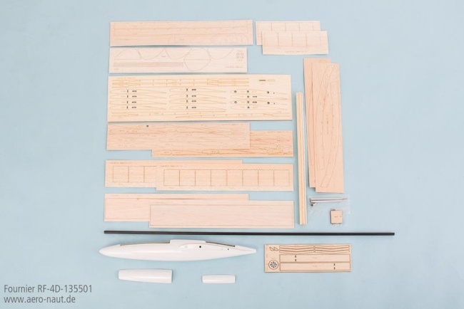 Der Modellbausatz enthält sämtliche lasergeschnittenen Holzteile zum Aufbau der Tragflächen und Leitwerke, weißen GfK-Rumpf und weiße Kabinenhaube, die bekannte aero-naut Helling, Kiefernholme, Ruderanlenkungen und Bowdenzüge, diverse Kleinteile. Eine ausführlich bebilderte Bauanleitung im bewährten aero-naut 3D-Stil führt zum schnellen Bauerfolg. Ein passender Spinner und Mittelstück für Klappluftschraubenliegen dem Bausatz ebenfalls bei. Der Spannkonus abhängig von der Motorwelle wird zusätzlich benötigt.
