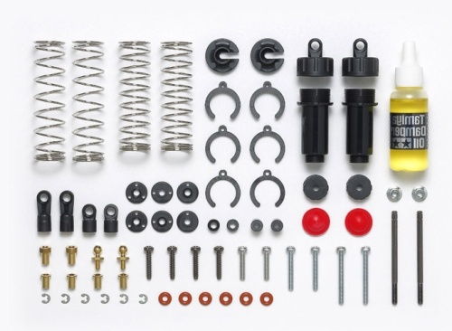 Lieferumfang: 2 Stk. Öldruckstoßdämpfer 2 Stk. Federn hart 2 Stk. Federn weich Befestigungsmaterial 90ml Öl (soft)