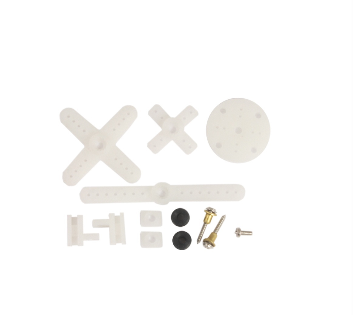 Technische Daten: Betriebsspannung: 4,8-6,0V Stellzeit 4.8V: 0,07s / 60° Stellzeit 6.0V: 0,06s / 60° Stellmoment 4,8V: 15 Ncm Stellmoment 6,0V: 17 Ncm Gewicht: 12,5 g Abmessungen: 22.5 x 11.5 x 24.6 mm